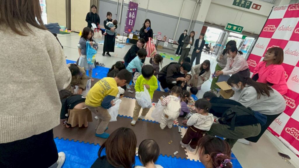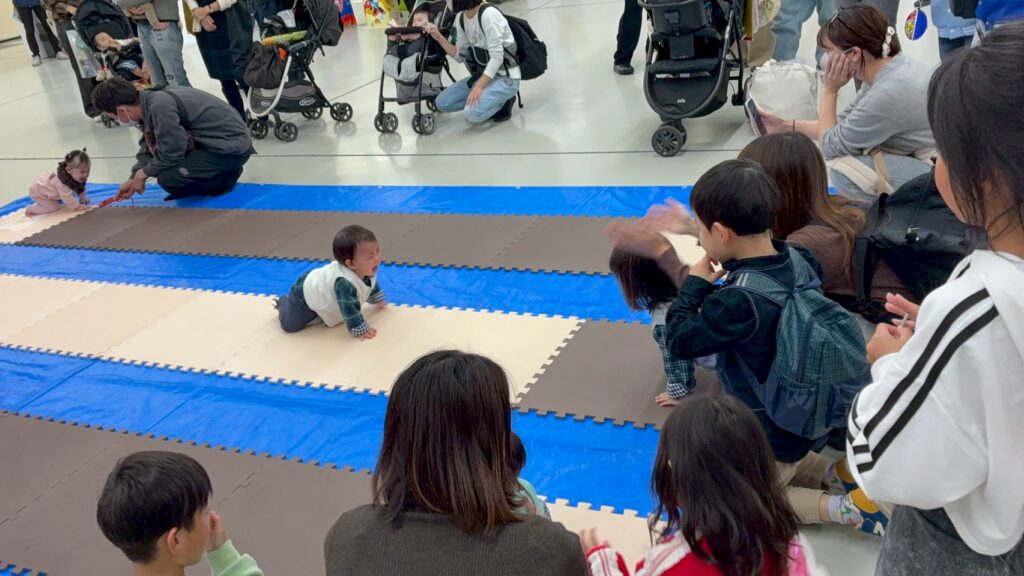 赤ちゃんから小学生まで楽しめるイベントで、ハイハイレースやおかしまき、AI体験やプログラミング、体力測定などを行いました。